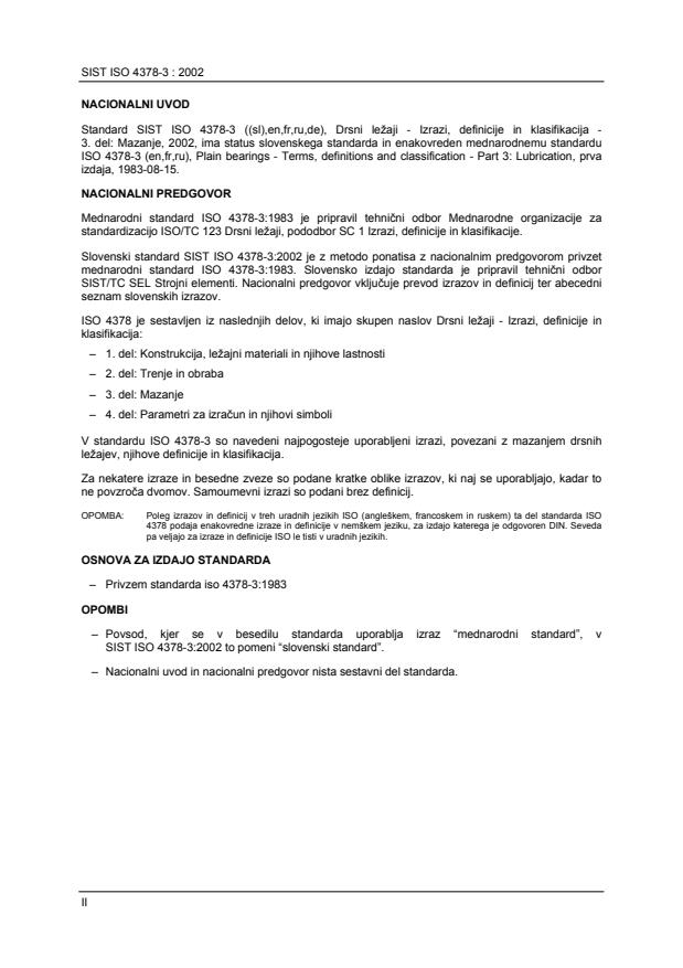 ISO 4378-3:1983 is a standard published by the International Organization for Standardization (ISO). Its full title is "Plain bearings — Terms, definitions and classification — Part 3: Lubrication". This standard covers: Gives the most commonly used terms applied in the field of plain bearings lubrication as well as their definitions and classification. For some terms and word-combinations their short forms are given which are recommended for use when they are unambiguous; self-explanatory terms are given without definitions.