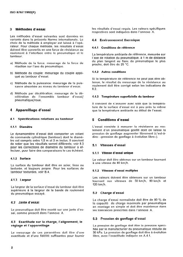 ISO 8767:1992 - Pneumatiques pour voitures particulieres -- Méthodes de mesure de la résistance au roulement