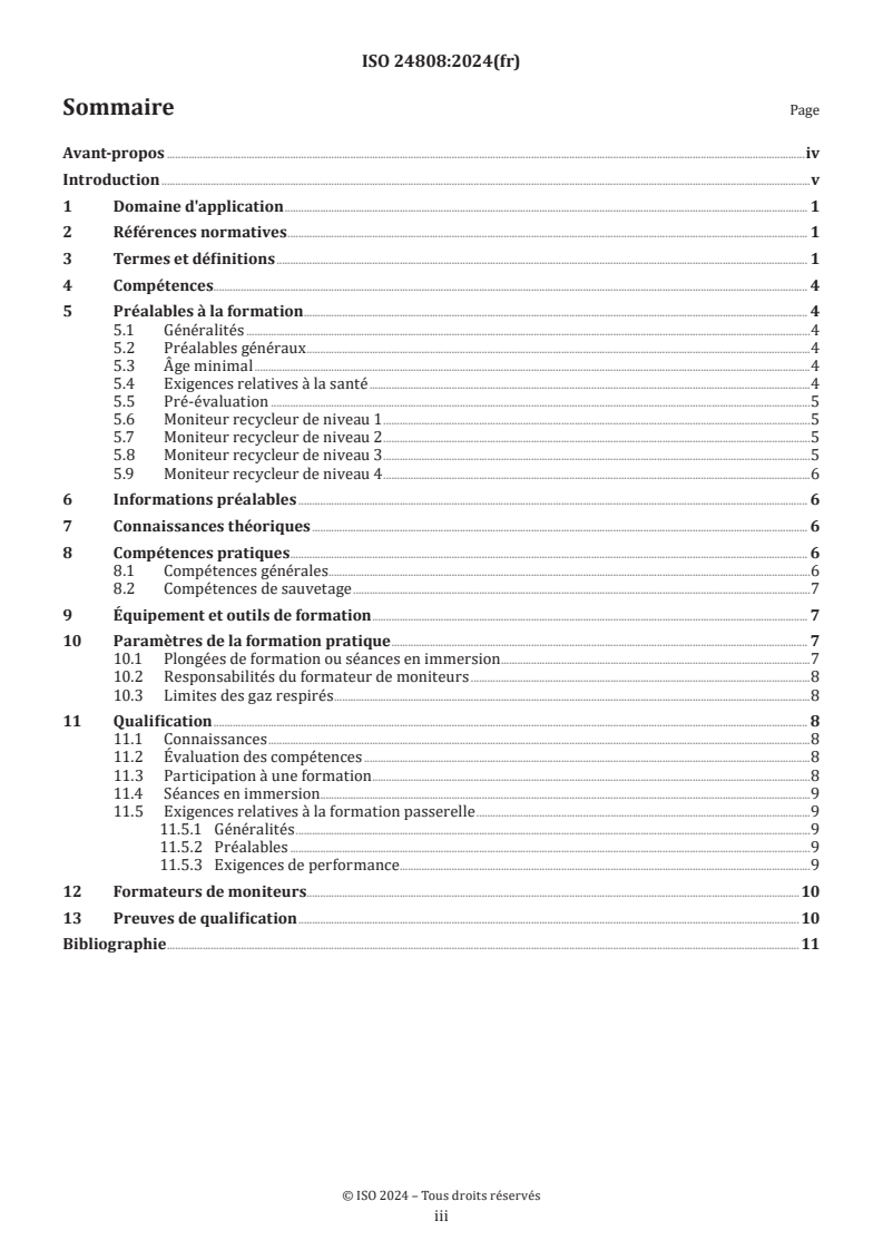 ISO 24808:2024 - Services relatifs à la plongée de loisirs — Exigences concernant la formation des moniteurs recycleur Released:4/17/2024