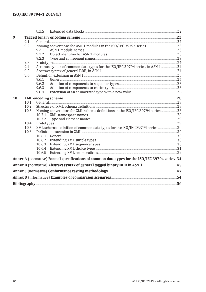 - Naming and identification conventions - for ASN.1 modules, XML namespaces and resource identifiers used across the ISO/IEC 39794 series.
