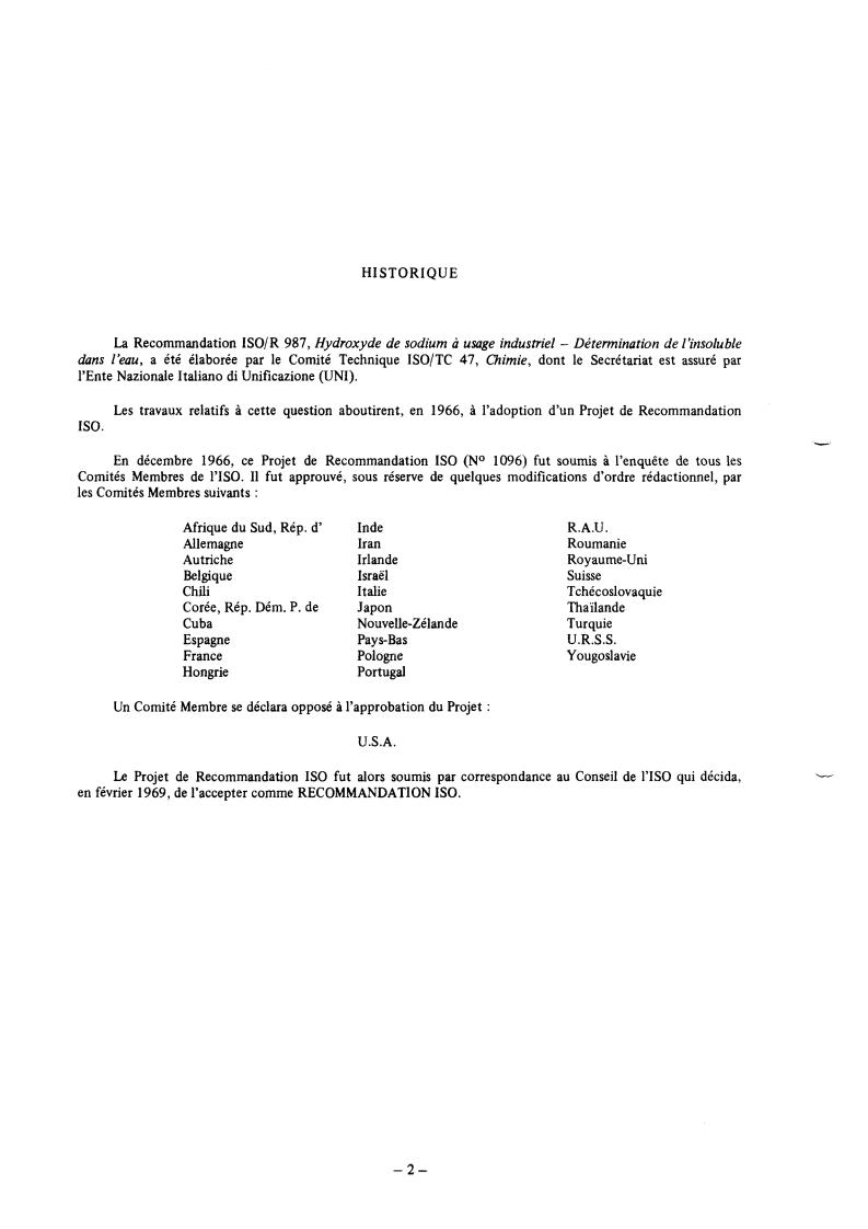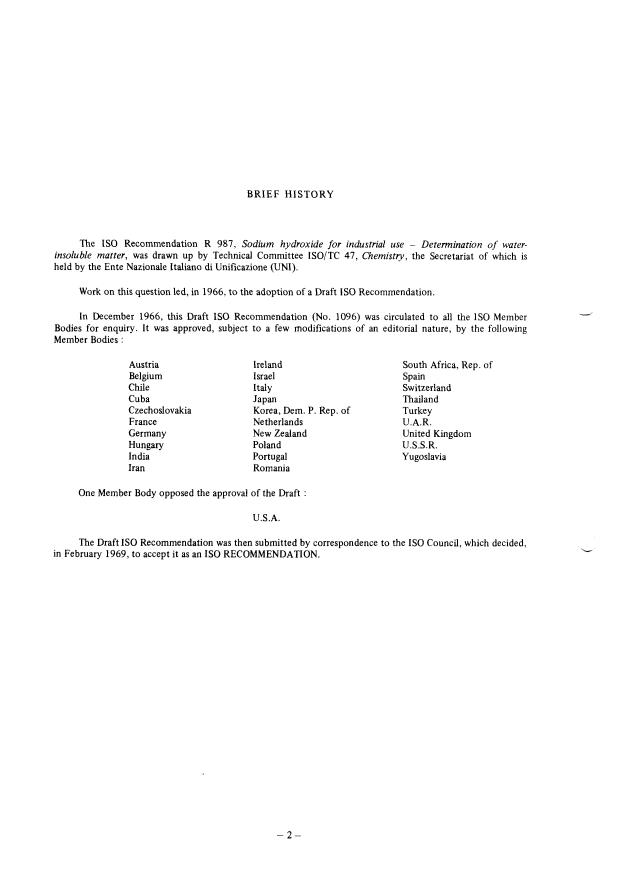 The IS0 Recommendation R 987, Sodium hydroxide for industrial use - Determination of water-