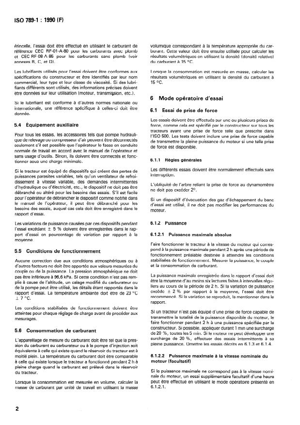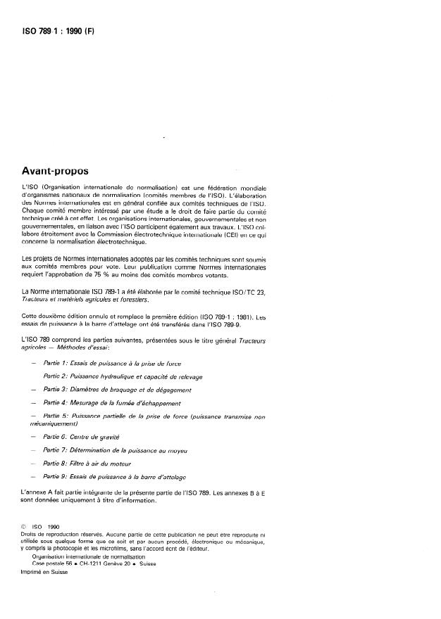 ISO 789-1:1990 - Tracteurs agricoles -- Méthodes d'essai