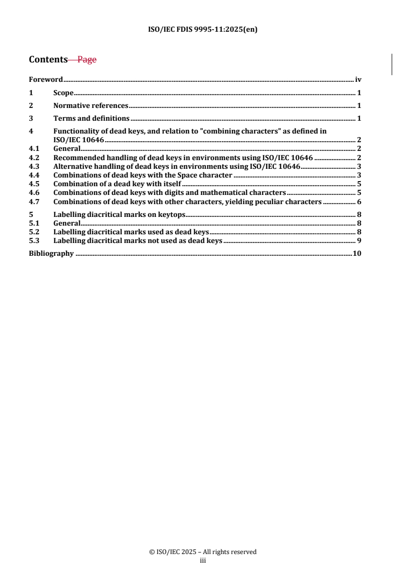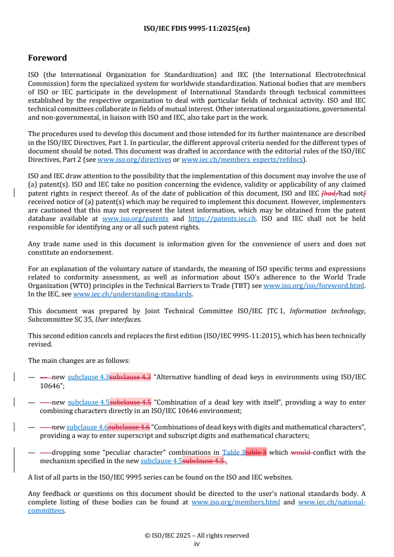 REDLINE ISO/IEC FDIS 9995-11 - Information technology — Keyboard layouts for office systems — Part 11: Functionality and labelling of dead keys Released:19. 09. 2025