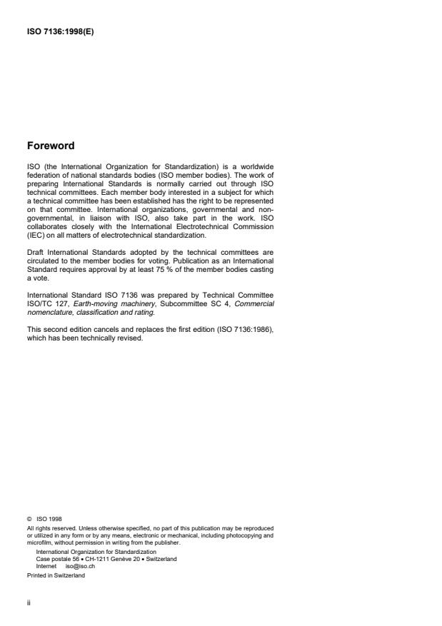 ISO 7136:1998 is classified under the following ICS (International Classification for Standards) categories: 01.040.53 - Materials handling equipment (Vocabularies); 53.100 - Earth-moving machinery. The ICS classification helps identify the subject area and facilitates finding related standards.