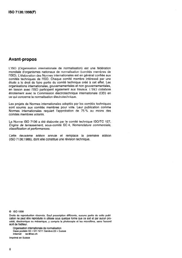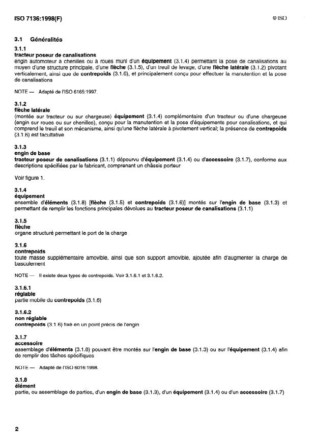ISO 7136:1998 is a standard published by the International Organization for Standardization (ISO). Its full title is "Earth-moving machinery — Pipelayers — Definitions and commercial specifications". This standard covers: Earth-moving machinery — Pipelayers — Definitions and commercial specifications
