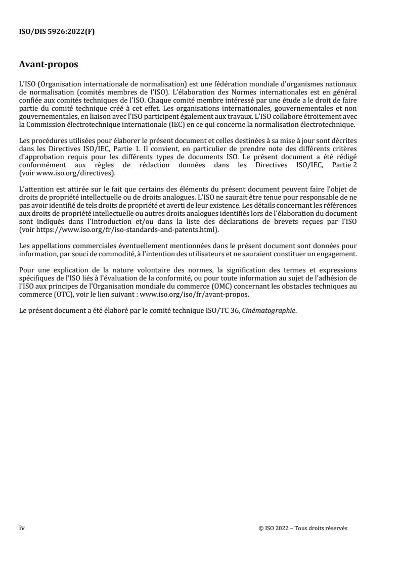 ISO/PRF 5926 - Exigences techniques et méthodes d'essai pour la projection cinéma numérique stéréoscopique Released:10/5/2022