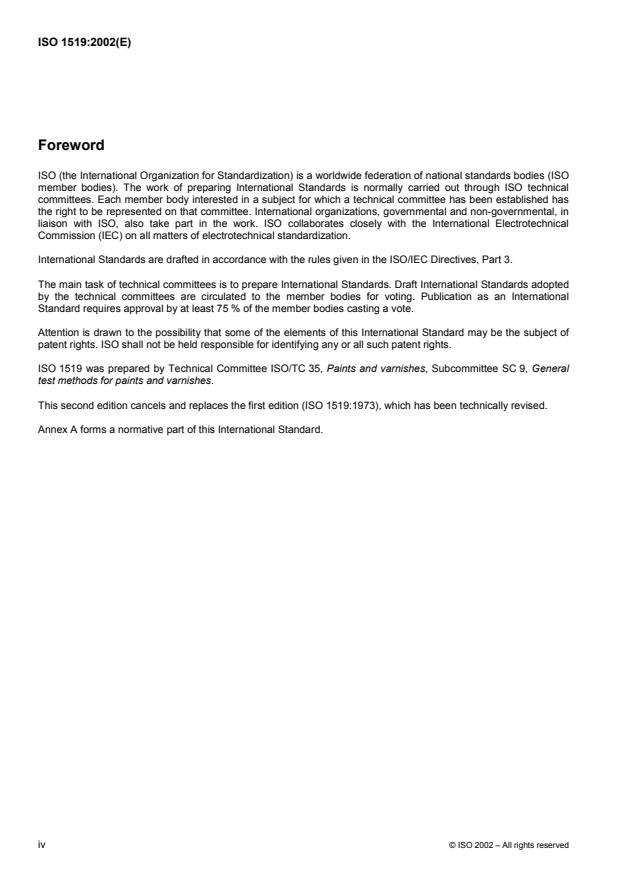 ISO 1519 was prepared by Technical Committee ISO/TC 35, Paints and varnishes, Subcommittee SC 9, General