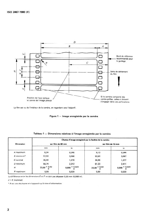 ISO 2467:1980 - Cinématographie -- Champ d'image enregistré par la fenetre des caméras 65 et 70 mm et champ maximal d'image projetable sur copies d'exploitation 70 mm -- Positions et dimensions