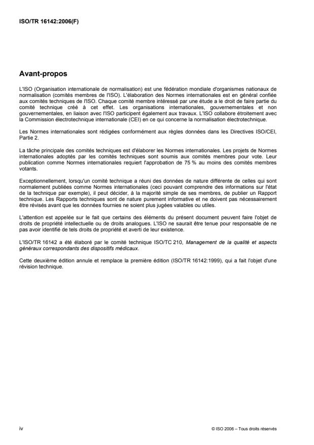 L'ISO/TR 16142:2006 identifie un certain nombre de normes et de guides importants qui peuvent être utiles pour évaluer la conformité des dispositifs médicaux aux principes essentiels reconnus de sécurité et de performances. L'ISO/TR 16142:2006 destiné aux fabricants, organismes de normalisation et autorités réglementaires, traite de l'évaluation de la conformité.