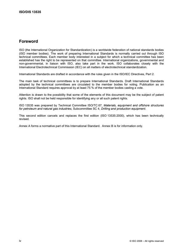 ISO/NP 13535 is a standard published by the International Organization for Standardization (ISO). Its full title is "Petroleum and natural gas industries — Drilling and production equipment — Hoisting equipment". This standard covers: Petroleum and natural gas industries — Drilling and production equipment — Hoisting equipment