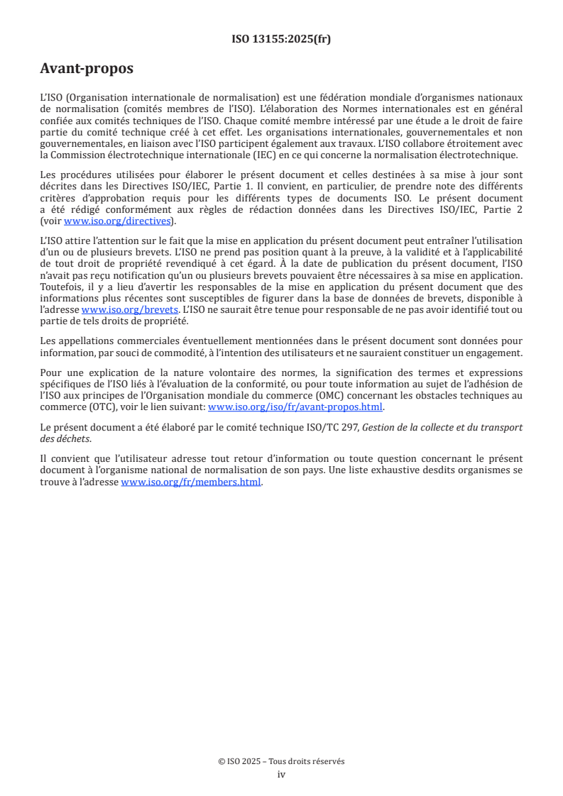 Keywords integrated: ISO 13155:2025, refuse collection vehicles, RCV, refuse collection truck, vocabulary, classification, commercial specifications, loading system, compaction system.