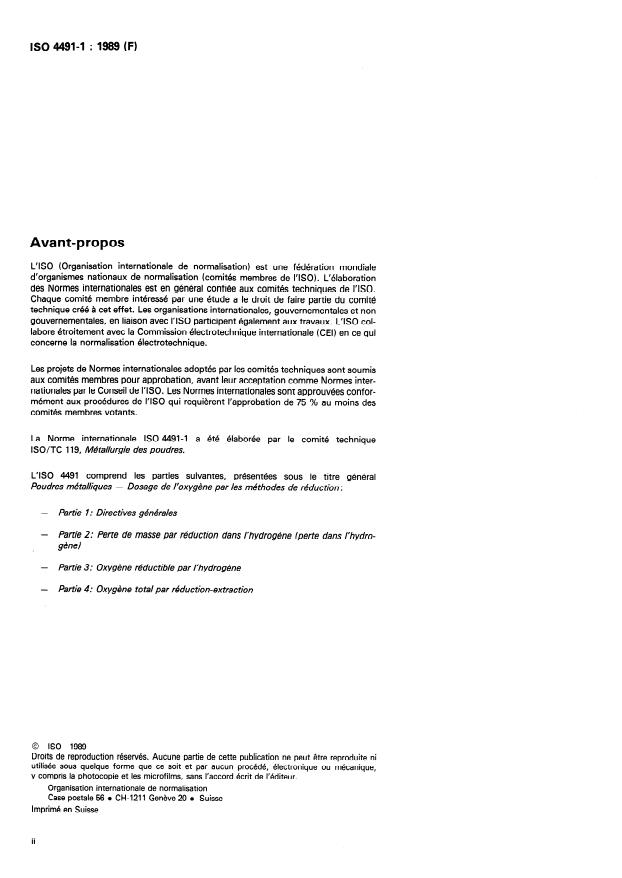 ISO 4491-1:1989 - Poudres métalliques -- Dosage de l'oxygene par les méthodes de réduction