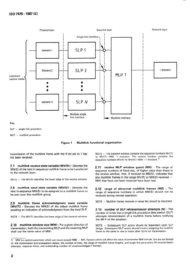 Keywords: ISO 7478, multilink procedures, MLP, SLP, multilink frame, data link layer, sequence numbers, bandwidth aggregation, load sharing, resequencing, flow control.