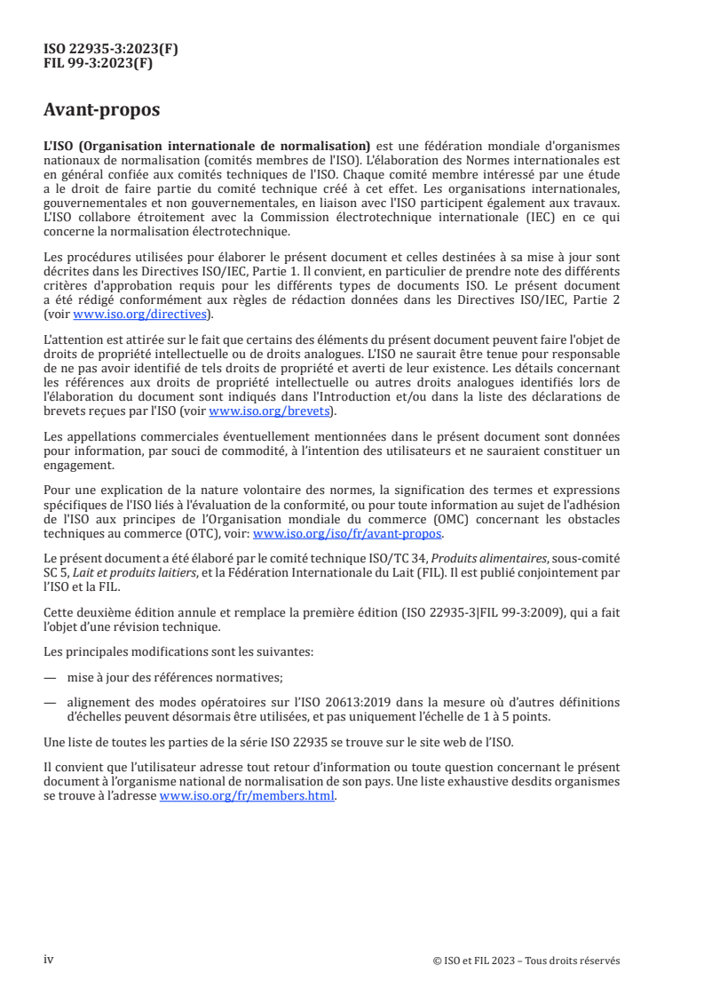 Cette deuxième édition annule et remplace la première édition (ISO 22935-3|FIL 99-3:2009), qui a fait