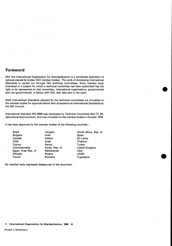 International Standard IS0 6539 was developed by Technical Committee ISO/TC 34,