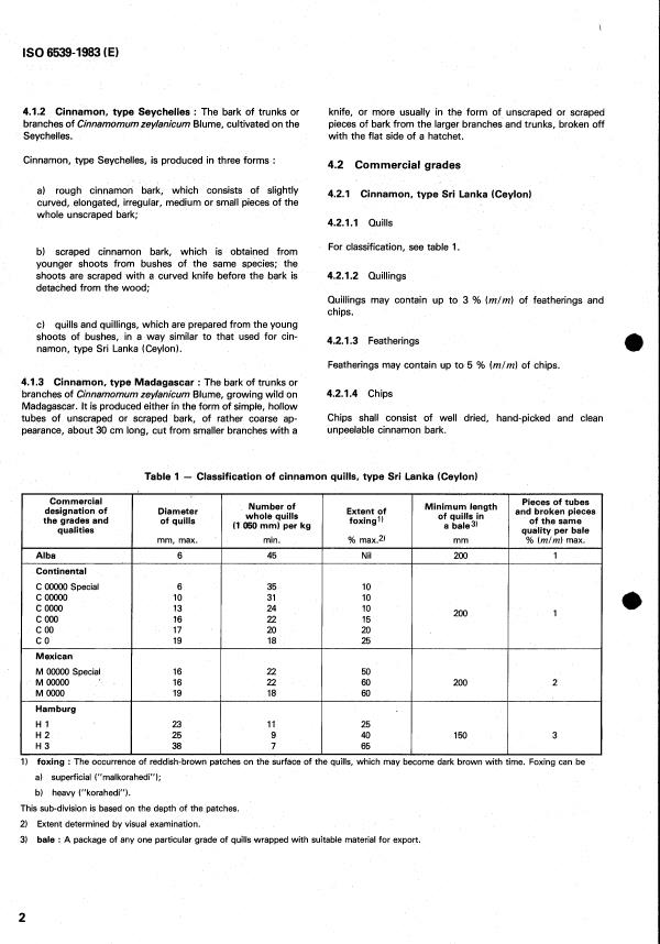 ISO 6539:1983 is a standard published by the International Organization for Standardization (ISO). Its full title is "Cinnamon (type Sri Lanka (Ceylon), type Seychelles and type Madagascar), whole or ground (powdered) — Specification". This standard covers: Cinnamon (type Sri Lanka (Ceylon), type Seychelles and type Madagascar), whole or ground (powdered) — Specification