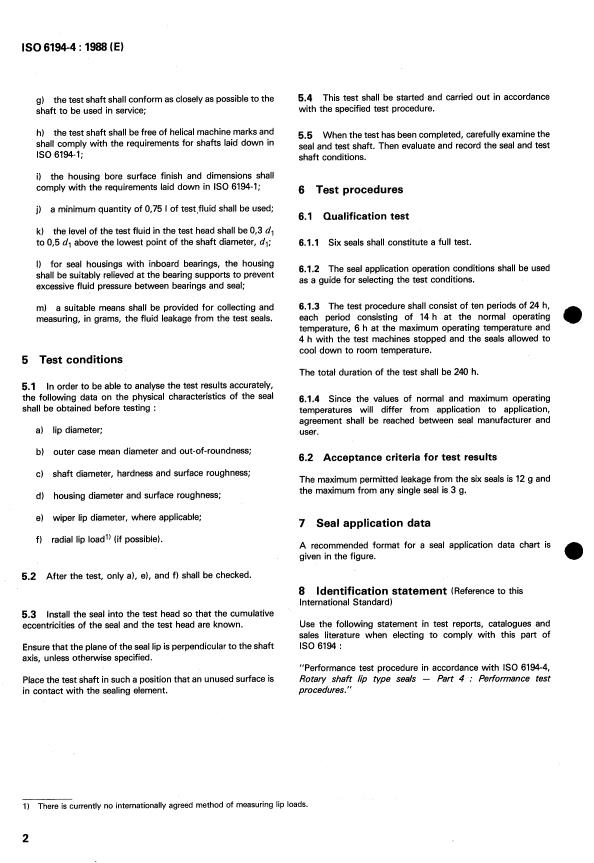 ISO 6194-4:1988 is a standard published by the International Organization for Standardization (ISO). Its full title is "Rotary shaft lip type seals — Part 4: Performance test procedures". This standard covers: Rotary shaft lip type seals — Part 4: Performance test procedures