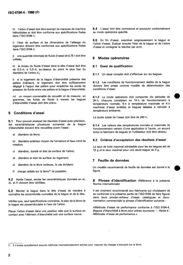 Bagues d'étanchéité à lèvre pour arbres tournants -- Partie 4: Méthodes d'essai de