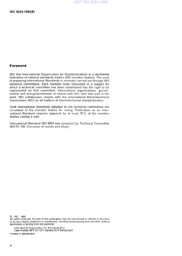 ISO 9224:1992 is a standard published by the International Organization for Standardization (ISO). Its full title is "Corrosion of metals and alloys — Corrosivity of atmospheres — Guiding values for the corrosivity categories". This standard covers: Specifies guiding corrosion values and characteristics of corrosion for the corrosion categories defined in ISO 9223. Gives terms and definitions.