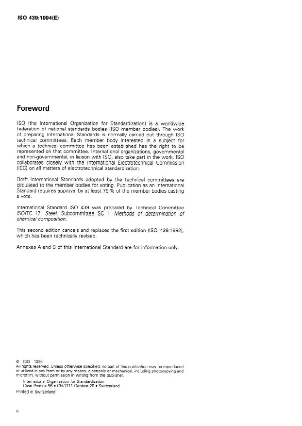 This second edition cancels and replaces the first edition (ISO 439:1982 1 l