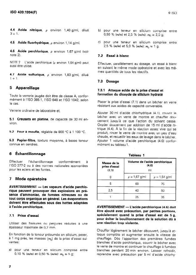 ISO 439:1994 - Aciers et fontes -- Dosage du silicium total -- Méthode gravimétrique