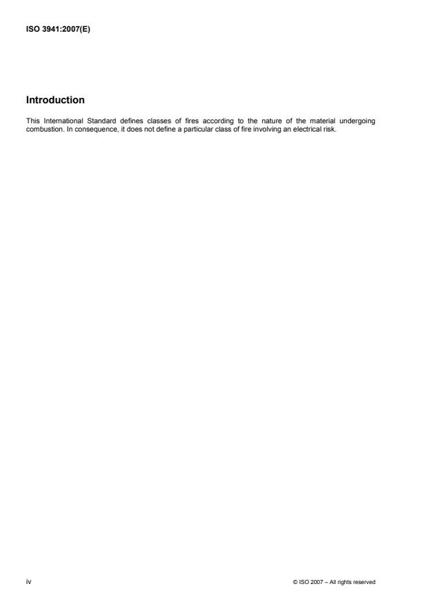 ISO 3941:2007 does not define a separate class of fire involving electrical risks, focusing instead solely on the fuel source.