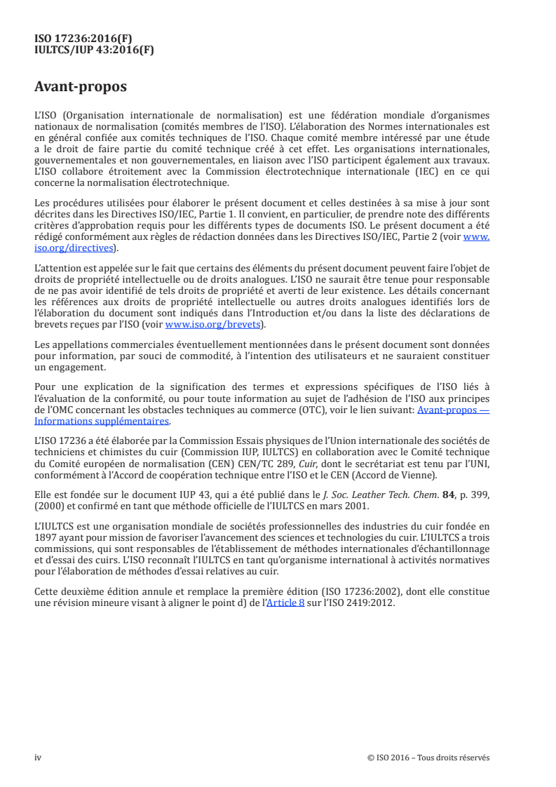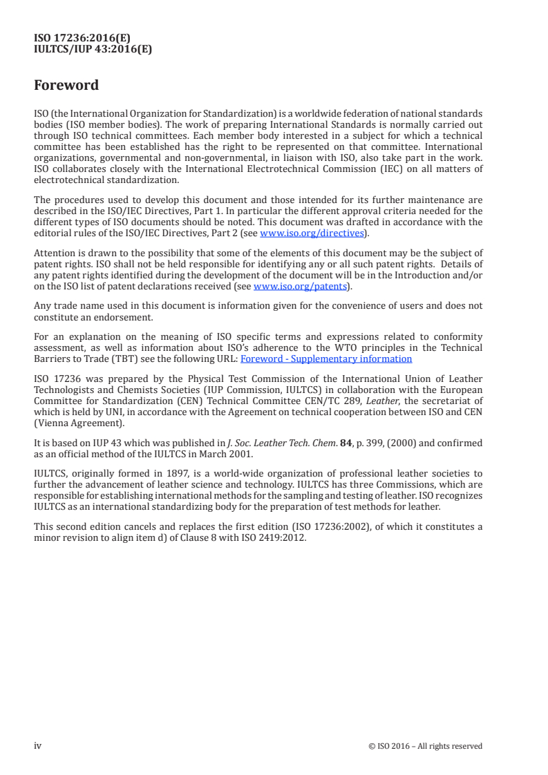 ISO 17236 was prepared by the Physical Test Commission of the International Union of Leather