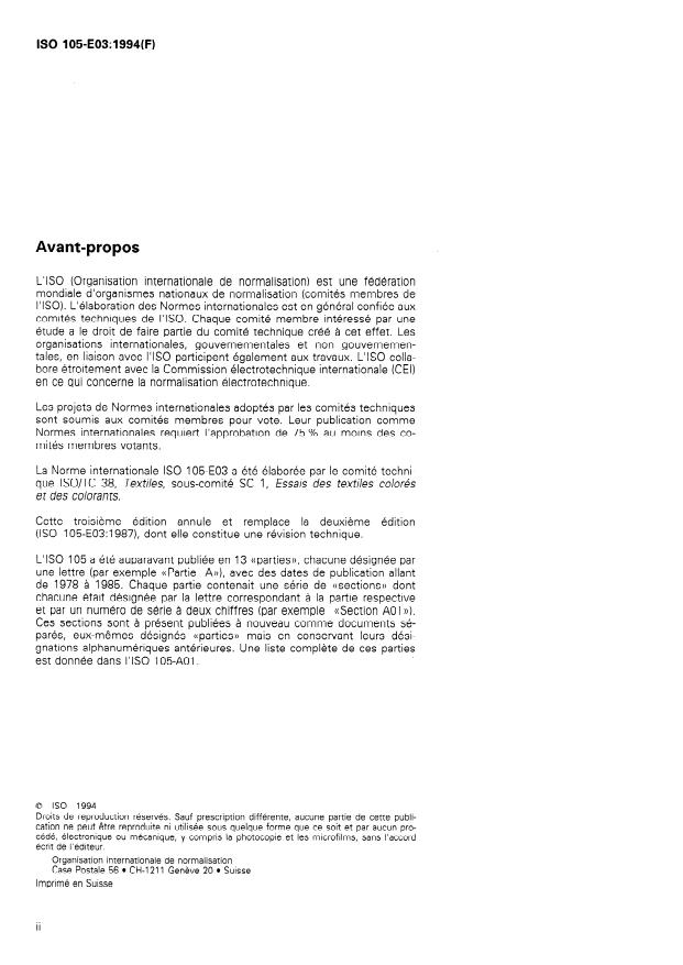 La Norme internationale ISO 105-E03 a été élaborée par le comité techni-