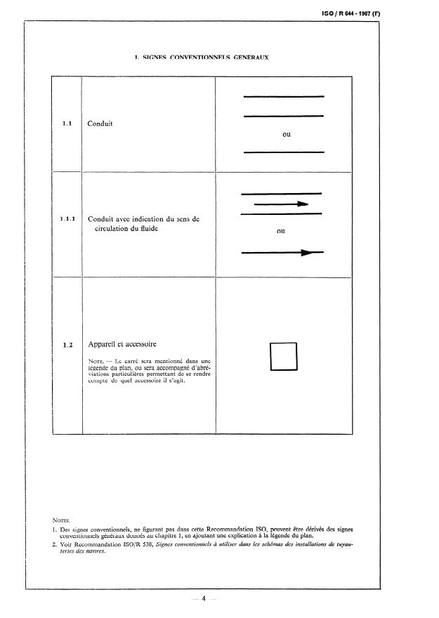 Recommandation ISO/R 538, Signes conventionnels à utiliser dans les schémas des installations de tuyauteries des navires.
