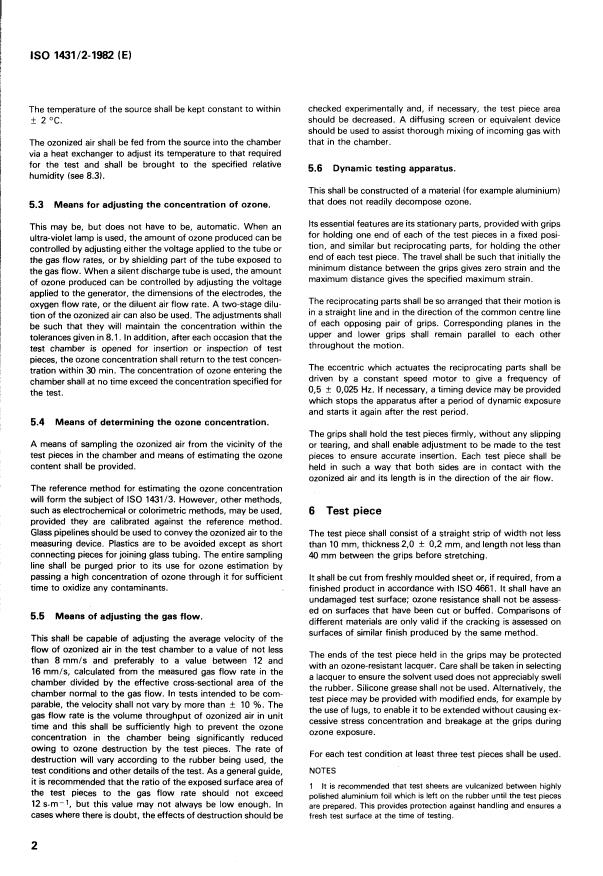 ISO 1431-2:1982 is a standard published by the International Organization for Standardization (ISO). Its full title is "Rubber, vulcanized — Resistance to ozone cracking — Part 2: Dynamic strain test". This standard covers: Rubber, vulcanized — Resistance to ozone cracking — Part 2: Dynamic strain test