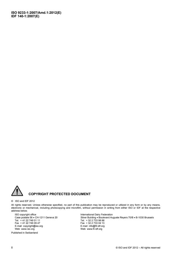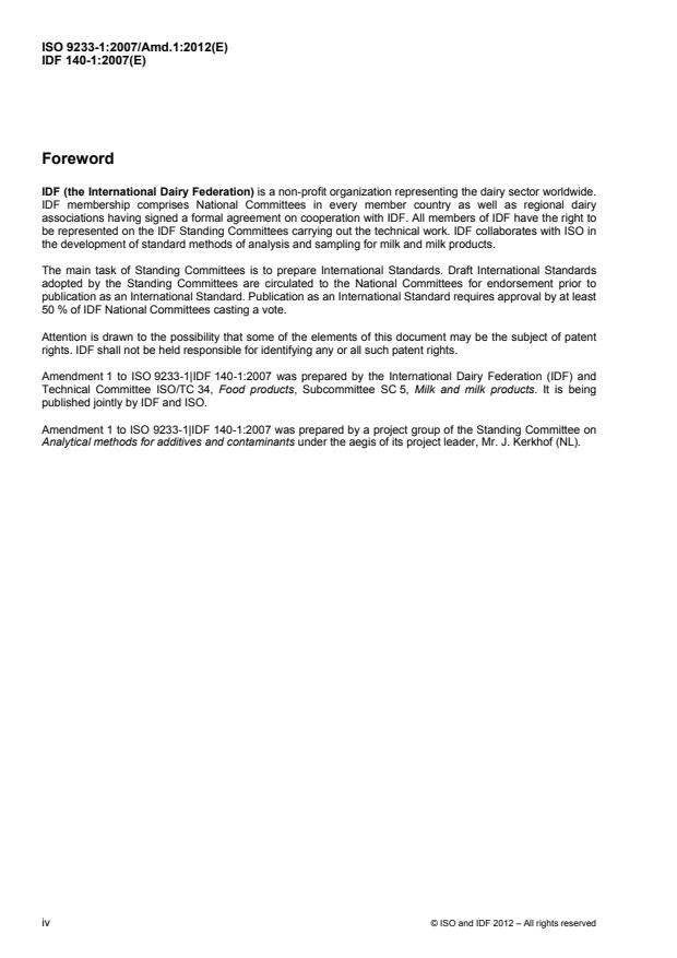 Amendment 1 to ISO 9233-1|IDF 140-1:2007 was prepared by Technical Committee ISO/TC 34, Food