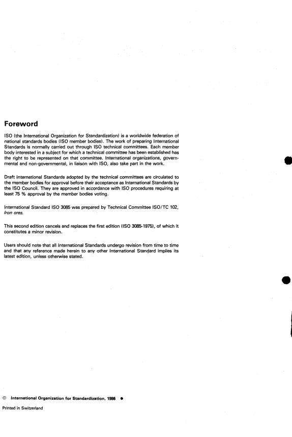ISO 3085:1986 - Iron ores -- Experimental methods for checking the precision of sampling