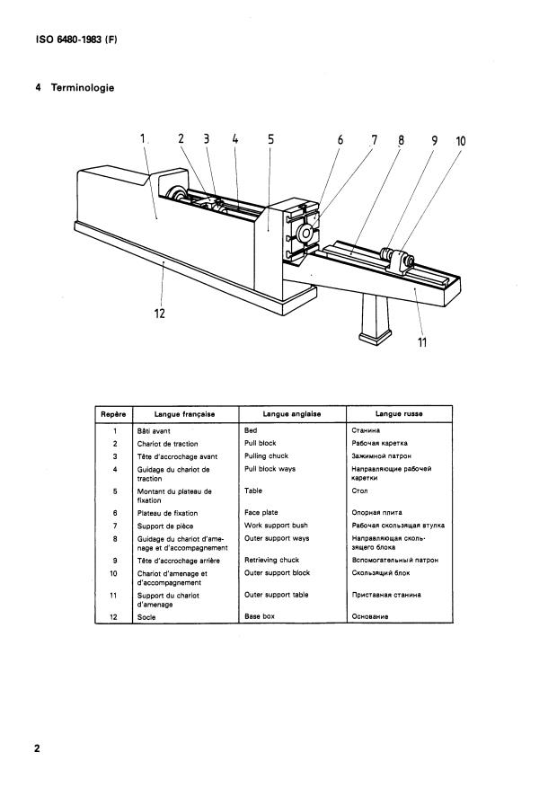 ISO 6480:1983 is a standard published by the International Organization for Standardization (ISO). Its full title is "Conditions of acceptance for horizontal internal broaching machines — Testing of the accuracy". This standard covers: Specifies geometrical tests for these general purpose and normal accuracy broaching machines and gives the corresponding permissible deviations apply. Gives also the terminology used for the main elements of the machine (in English, French and Russian as well as the equivalent terms in German and Italian). It deals only with the verification of accuracy of the machine. It does not apply to the testing of the running of the machine, nor to machine characteristics which should generally be checked before the accuracy is tested.