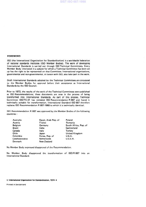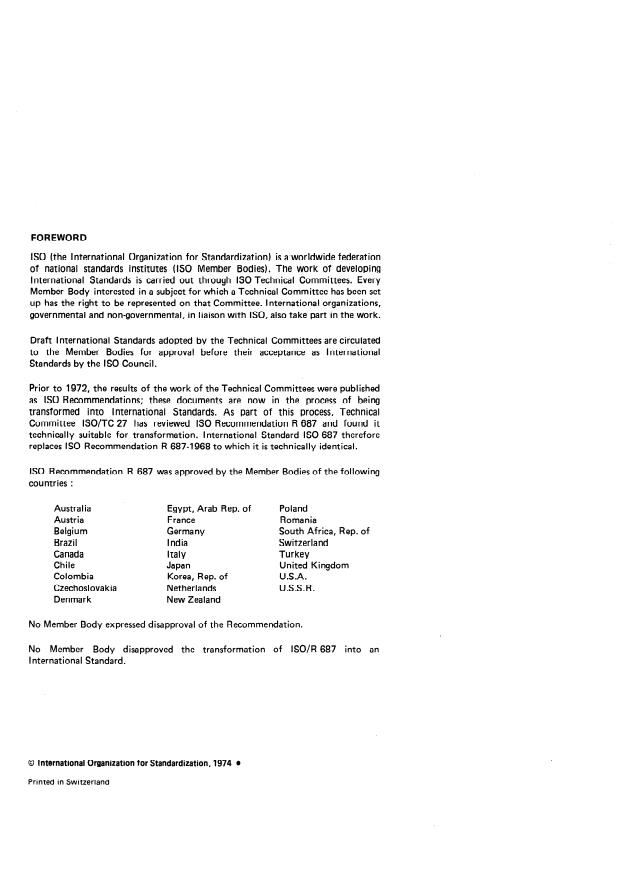 Committee ISO/TC 27 has reviewed IS0 Recommendation R 687 and found it