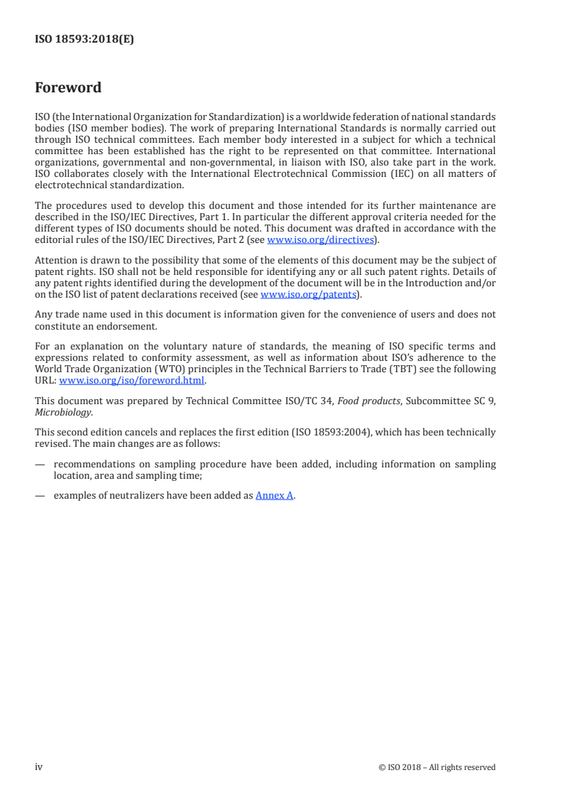 ISO 18593:2018 - Microbiology of the food chain -- Horizontal methods for surface sampling