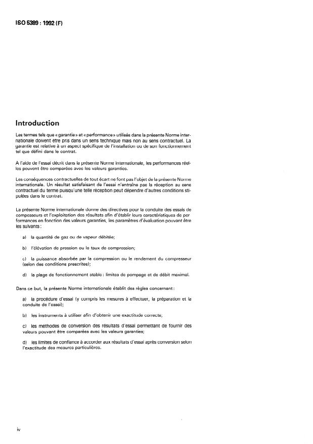 ISO 5389:1992 - Turbocompresseurs -- Code d'essais des performances