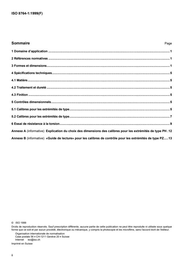 ISO 8764-1:1999 is a standard published by the International Organization for Standardization (ISO). Its full title is "Assembly tools for screws and nuts — Screwdrivers for cross-recessed head screws — Part 1: Driver points". This standard covers: La présente partie de ISO 8764 spécifie les formes, les dimensions, les spécifications techniques et les méthodes de contrôle d'essai de torsion des extrémités des tournevis à main et des embouts de tournevis à machine pour vis à empreinte cruciforme.La présente partie de ISO 8764 définit les deux types d'extrémités suivants :- type PH pour l'empreinte de type H ;- type PZ pour l'empreinte de type Z.Les empreintes types H et Z sont définies dans l'ISO 4757.Les spécifications générales, les longueurs des lames et le marquage des tournevis à main sont donnés dans l'ISO 8764-2.
