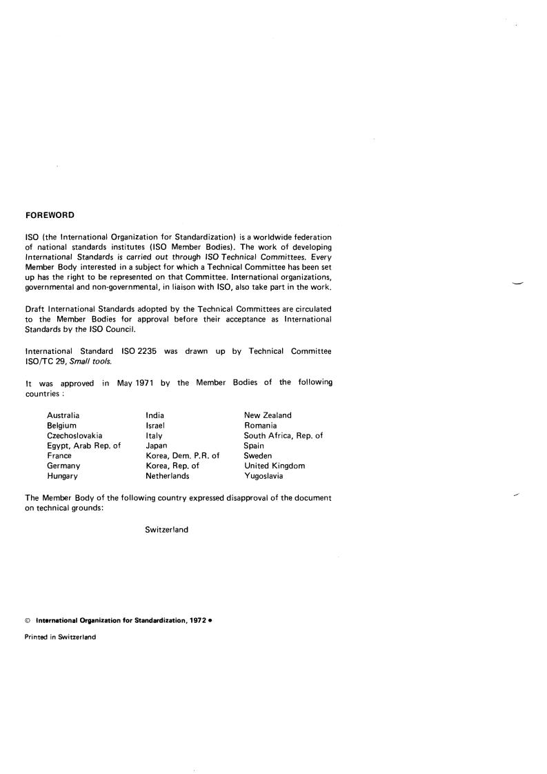 ISO 2235:1972 is a standard published by the International Organization for Standardization (ISO). Its full title is "Title missing - Legacy paper document". This standard covers: Title missing - Legacy paper document