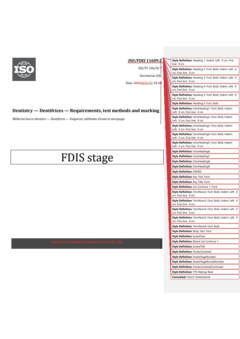 REDLINE ISO/FDIS 11609.2 - Dentistry — Dentifrices — Requirements, test methods and marking/10/2026