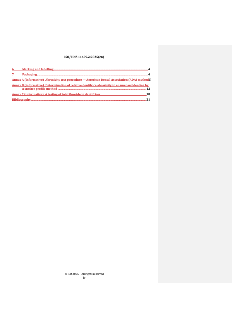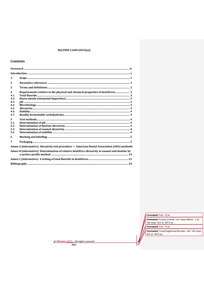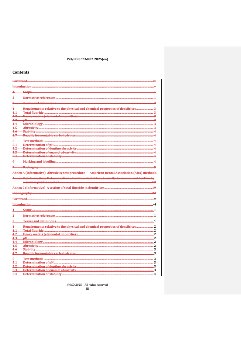 REDLINE ISO/FDIS 11609 - Dentistry — Dentifrices — Requirements, test methods and marking Released:4. 07. 2025