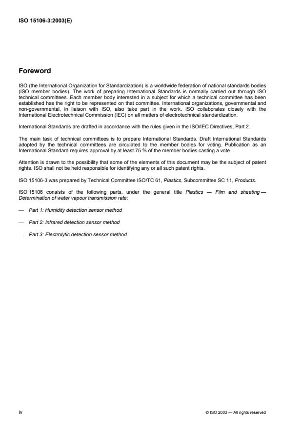 L'ISO 15106-3 a été élaborée par le comité technique ISO/TC 61, Plastiques, sous-comité SC 11, Produits.