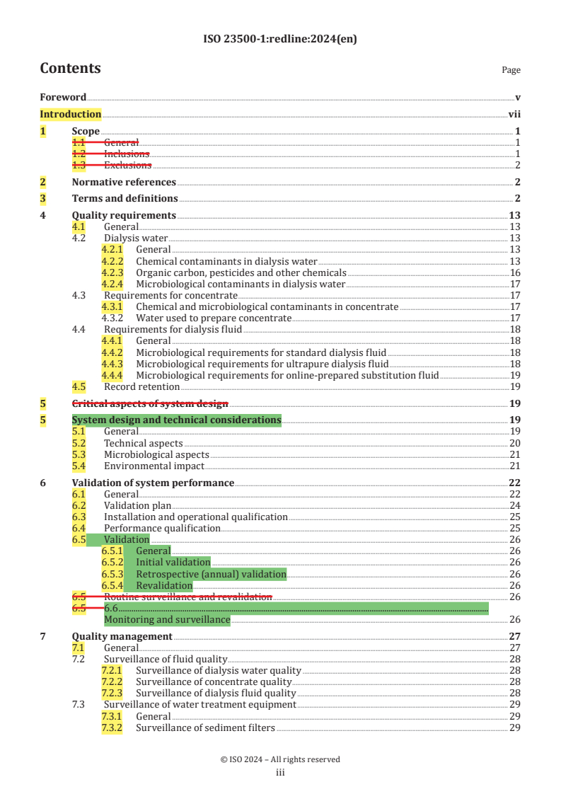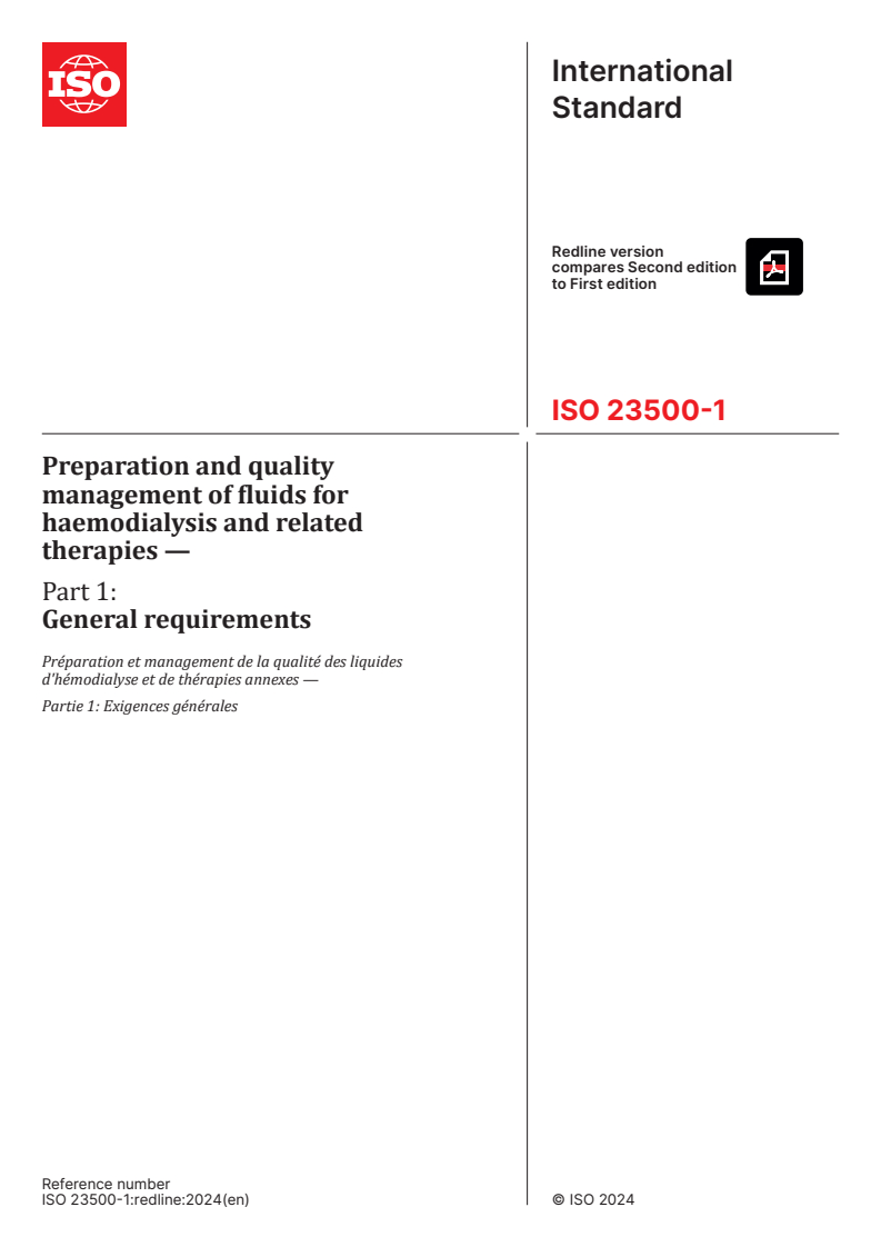 REDLINE ISO 23500-1:2024 - Preparation and quality management of fluids for haemodialysis and related therapies — Part 1: General requirements Released:8/16/2024