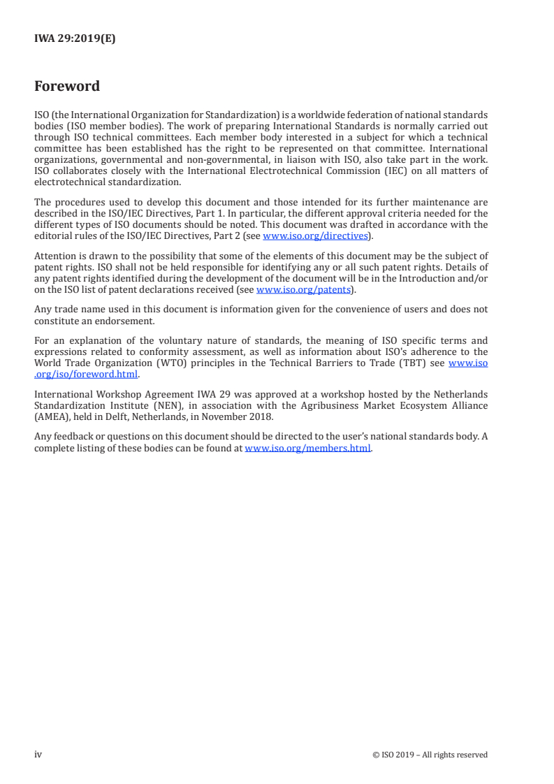 IWA 29:2019 is classified under the following ICS (International Classification for Standards) categories: 65.020.01 - Farming and forestry in general. The ICS classification helps identify the subject area and facilitates finding related standards.