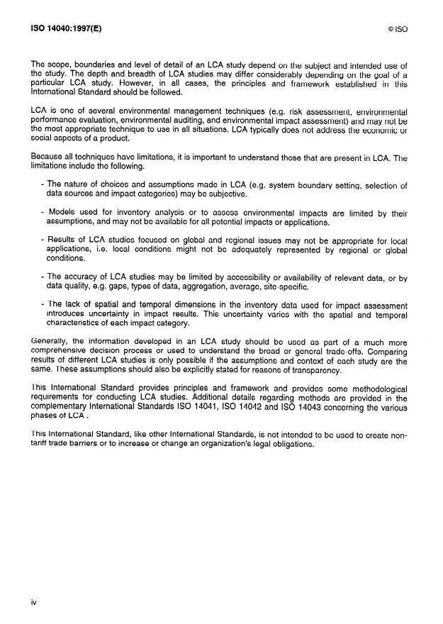 framework for conducting and reporting LCA studies, and includes certain minimal requirements.