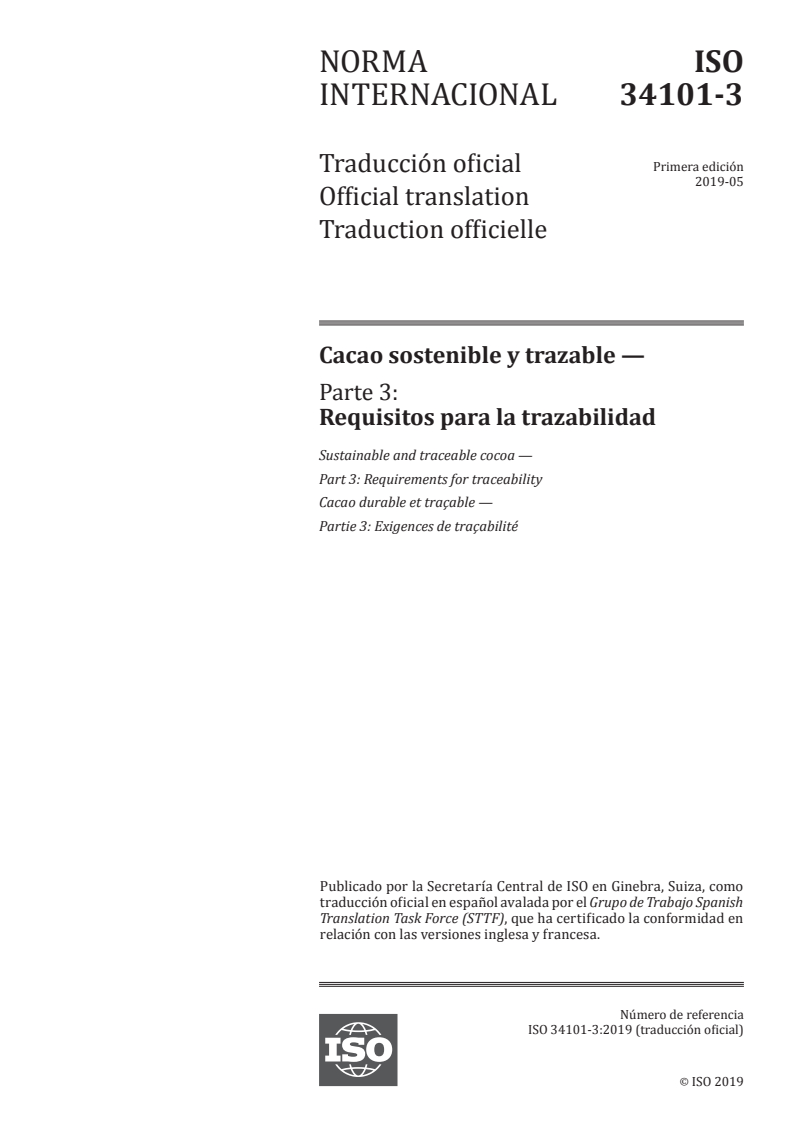 ISO 34101-3:2019 - Sustainable and traceable cocoa — Part 3: Requirements for traceability Released:5/6/2019