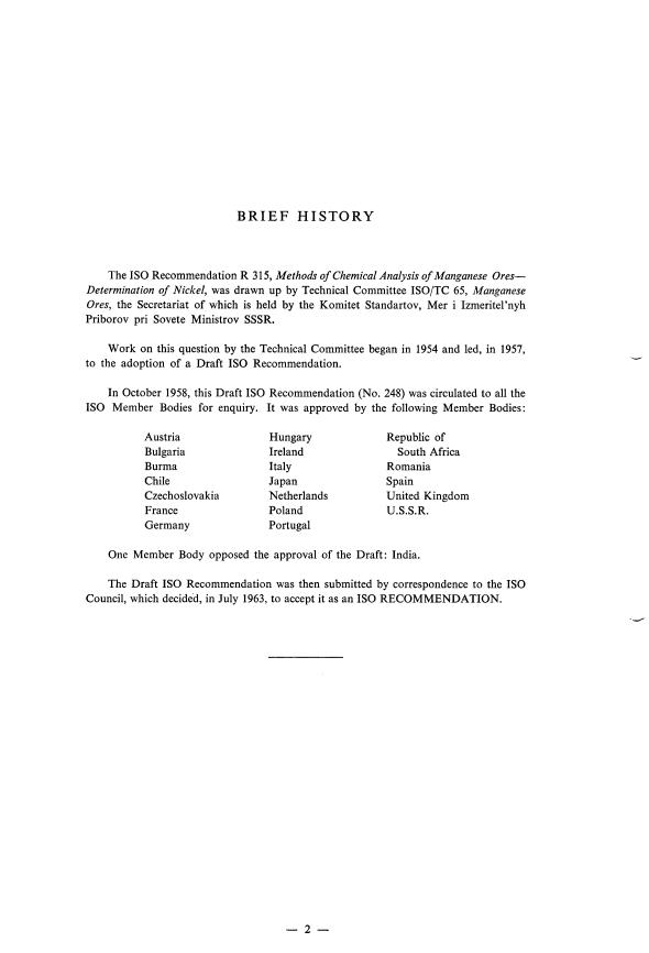 ISO/R 315:1963 - Methods of chemical analysis of manganese ores -- Determination of nickel