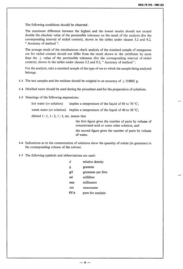 ISO/R 315:1963 - Methods of chemical analysis of manganese ores — Determination of nickel Released:7/1/1963