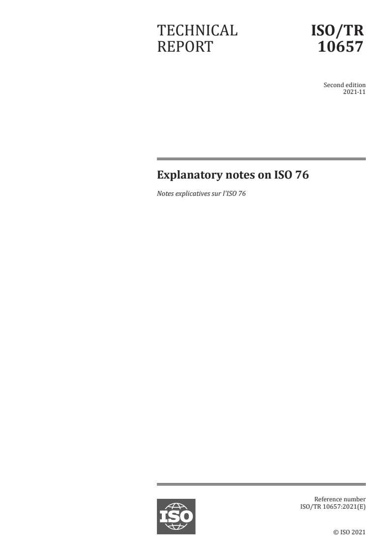 ISO/TR 10657:2021 - Explanatory notes on ISO 76 Released:11/12/2021