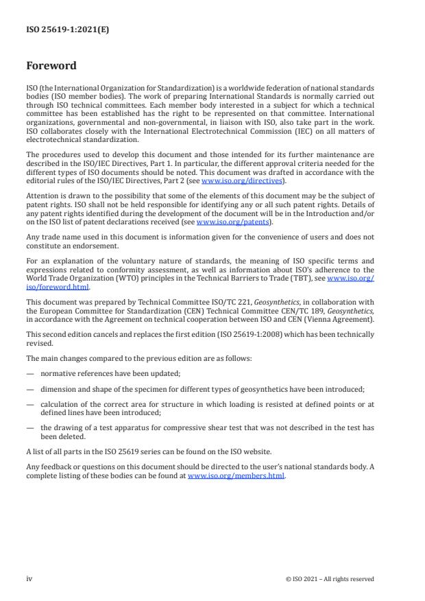 ISO 25619-1:2021 is a standard published by the International Organization for Standardization (ISO). Its full title is "Geosynthetics — Determination of compression behaviour — Part 1: Compressive creep properties". This standard covers: This document specifies index test methods for determining the compressive creep properties of geosynthetic products. The test specimens are subjected either to normal compressive loading or to a combination of normal compressive loading and shear loading. The test method with a normal load only (see Clause 5) is the standard method. The test method in which combined normal and shear loads are applied (see Clause 6) is intended for products that are sensitive to shear failure, i.e. which have a columnar or cuspated structure. The tests are carried out on dry specimens or on specimens immersed in water. The test is intended to be carried out with the specimen immersed in water when any part of the geosynthetic product contains a hydrophilic polymer.