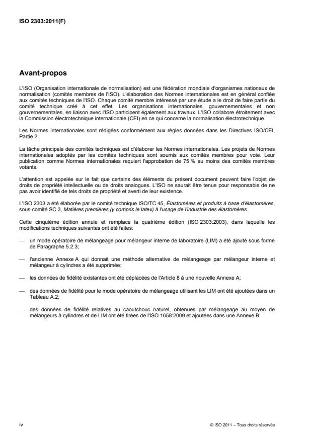 L'ISO 2303:2011 spécifie, pour des caoutchoucs polyisoprènes (IR), polymérisés en solution, non étendus à l'huile à usage général: les essais physiques et chimiques applicables aux caoutchoucs bruts; les ingrédients normalisés, une formule d'essai normalisée, l'appareillage et les méthodes d'essai pour l'évaluation des caractéristiques de vulcanisation.
